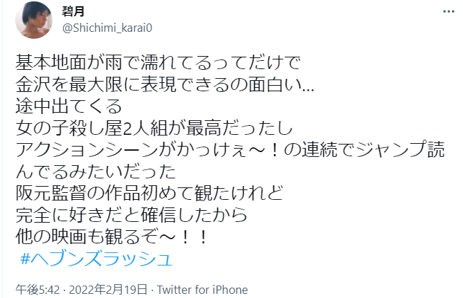 北陸殺し屋協会・金沢ランク1位の倉田を倒すべく、次々と刺客が現れる・・ってショートムービーなんだけど、もうね、「ベイビーわるきゅーれ」の阪元監督ならではの世界観なんだよね。